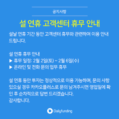 설 연휴 고객센터 휴무 안내