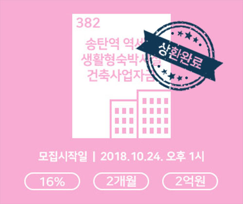 [데일리펀딩] 데일리 382호(송탄),384호(평택)상품 상환 완료 공지