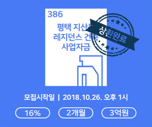[데일리펀딩] 데일리 386호(평택)상품 상환 완료 공지