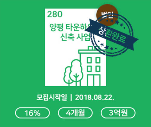 [데일리펀딩] 데일리 275호,280호(양평), 375호(송탄)상품 상환 완료 공지