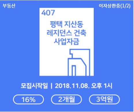 ■ 407호 평택 지산동 레지던스 건축사업자금 상품 1회차 ■