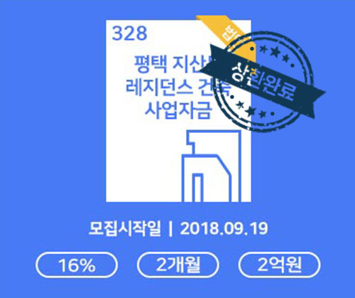 ■ 328호 평택 지산동 레지던스 건축사업자금 상품 상환완료 ■