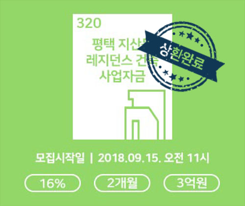 [데일리펀딩] 데일리 320호(평택)상품 조기상환 완료 공지