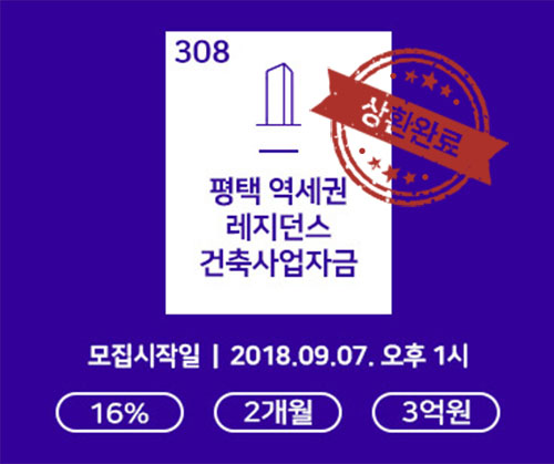 ■ 308호 평택 역세권 레지던스 건축사업자금 상품 상환완료 ■