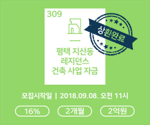 ■ 309호 평택 지산동 레지던스 건축사업자금 상품 조기상환완료 ■