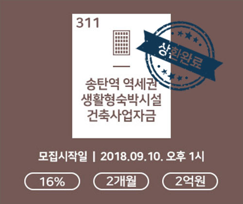 ■ 311호 송탄역 역세권 생활형숙박시설 건축 상품 조기상환완료 ■