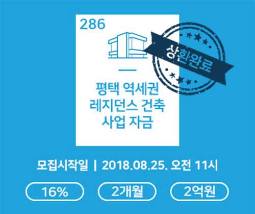 ■ 286호 평택 역세권 레지던스 건축사업자금 상품 상환완료 ■