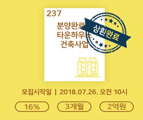 ■ 237호 분양완료된 타운하우스 건축사업 상품 조기상환완료 ■