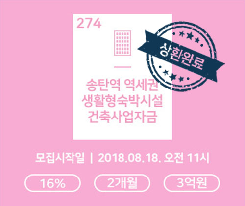■ 274호 송탄역 역세권 생활형숙박시설 건축 상품 상환완료 ■