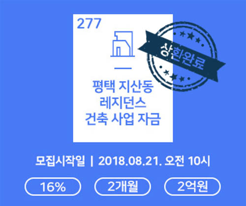■ 277호 평택 지산동 레지던스 건축사업자금 상품 상환완료 ■