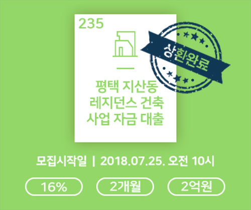 [데일리펀딩] 235호(평택)상품 상환완료 공지