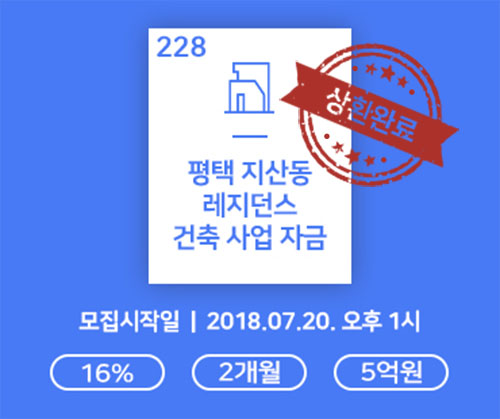 [데일리펀딩] 228호(평택)상품 조기상환완료 공지