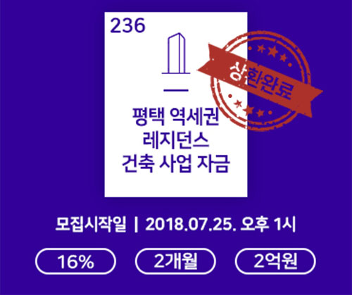 [데일리펀딩] 236호(평택)상품 조기상환완료 공지