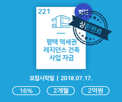 ■ 221호 평택 역세권 레지던스 건축사업자금 상품 상환완료 ■