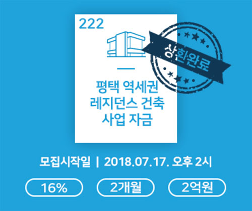 ■ 222호 평택 역세권 레지던스 건축사업자금 상품 상환완료 ■