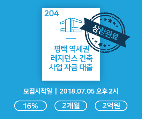 ■ 204호 평택 역세권 레지던스 건축사업자금 상품 상환완료 ■