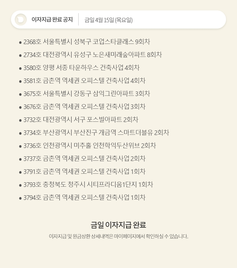 데일리 4월 15일 이자지급 완료 공지