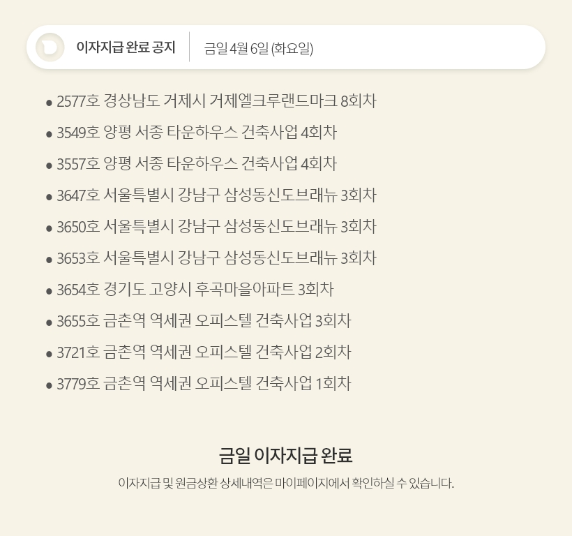 데일리 4월 6일 이자지급 완료 공지