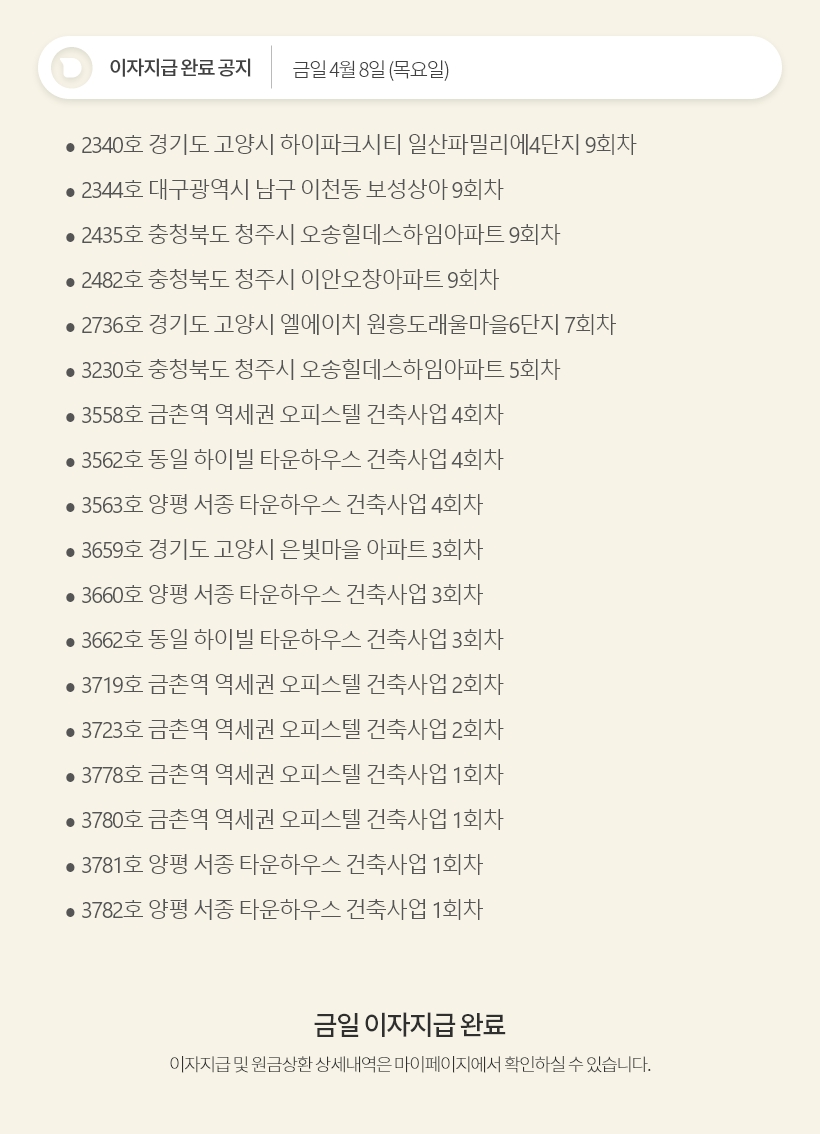 데일리 4월 8일 이자지급 완료 공지