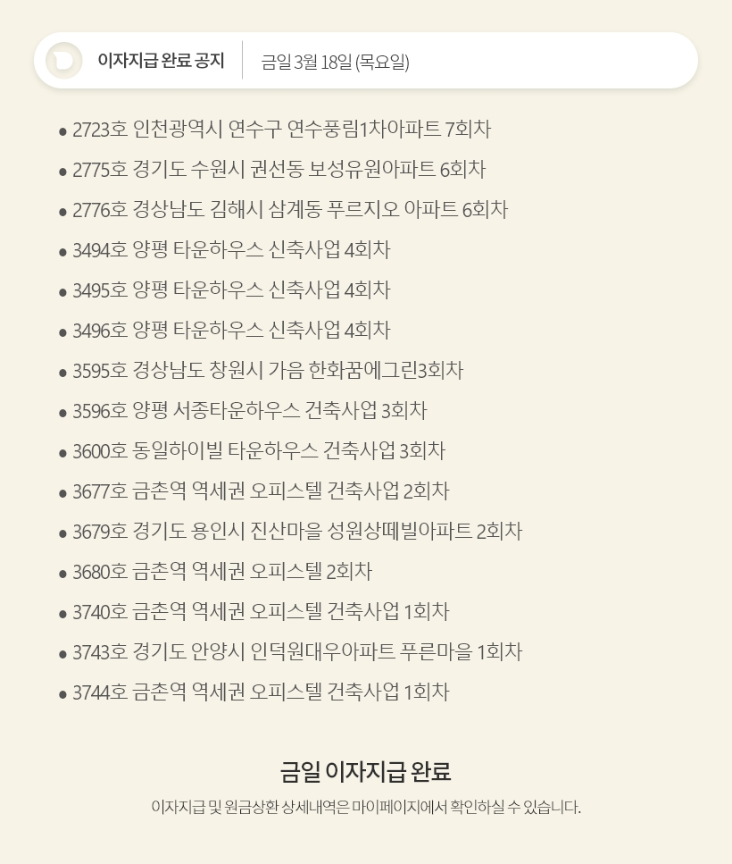 데일리 3월 18일 이자지급 완료 공지