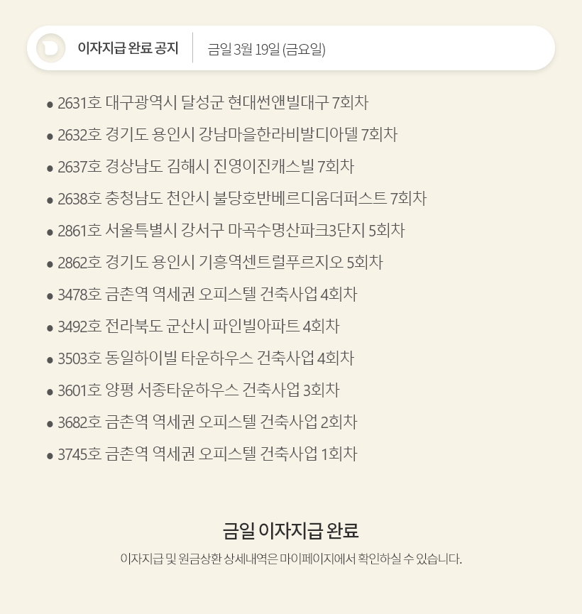 데일리 3월 19일 이자지급 완료 공지