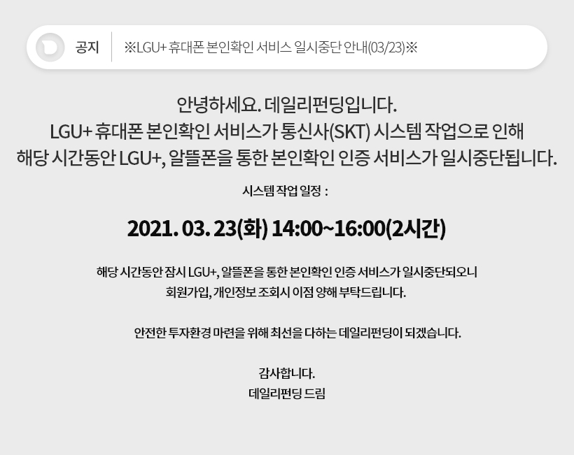 ※LGU+ 휴대폰 본인확인 서비스 일시중단 안내(03/23)※