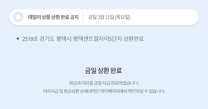 데일리 3월 11일 상품 상환 완료 공지