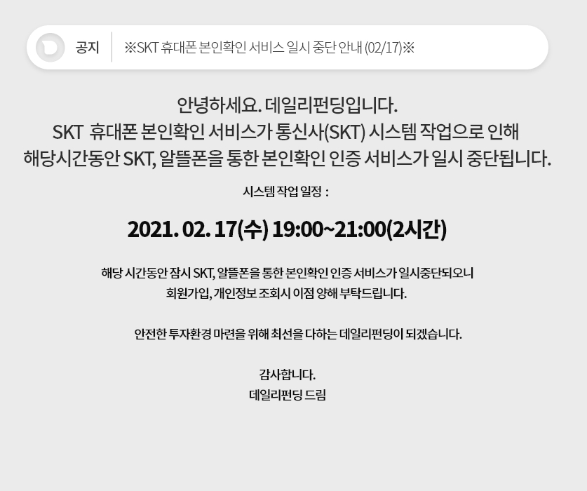 ※SKT 휴대폰 본인확인 서비스 일시 중단 안내 (02/17)※
