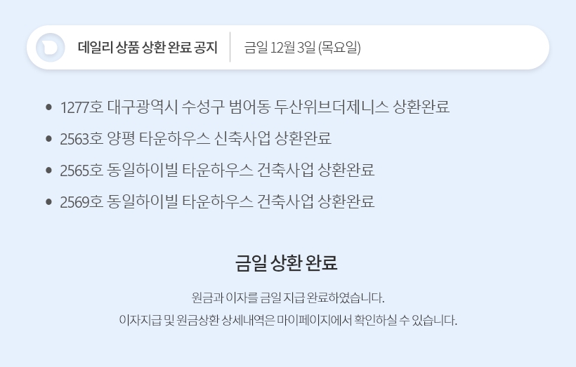 데일리 12월 3일 상품 상환 완료 공지