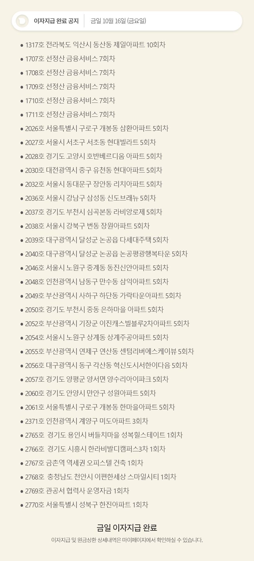 데일리 10월 16일 이자지급 완료 공지