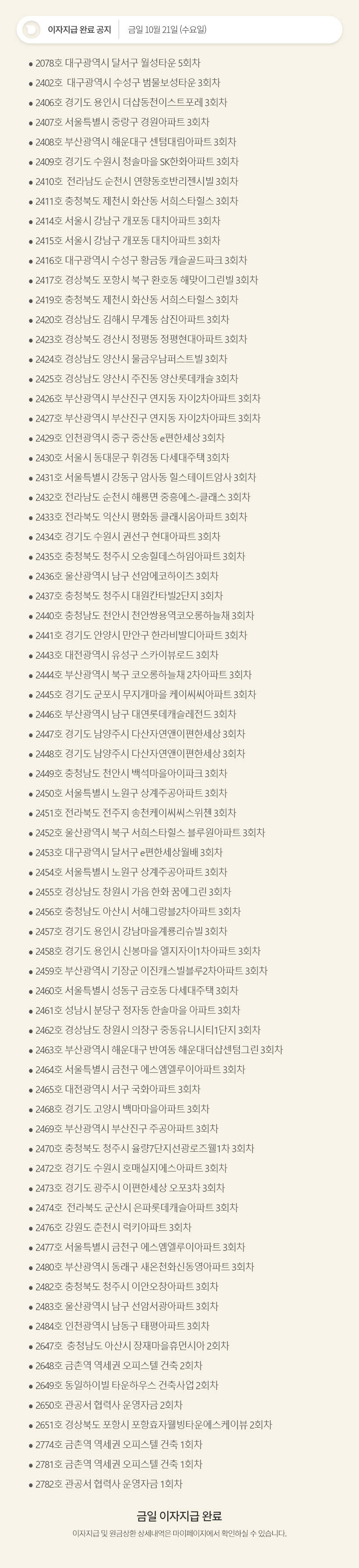 데일리 10월21일 이자지급 완료 공지