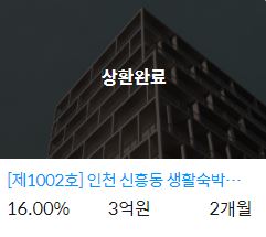 ■ 1002호 인천 신흥동 생활숙박시설 건축사업 상환완료 ■