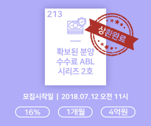 [데일리펀딩] 213호(ABL2)상품 조기상환완료 공지