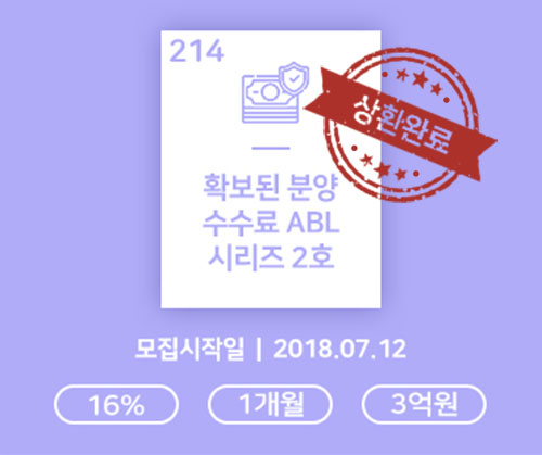 [데일리펀딩] 214호(ABL2)상품 조기상환완료 공지