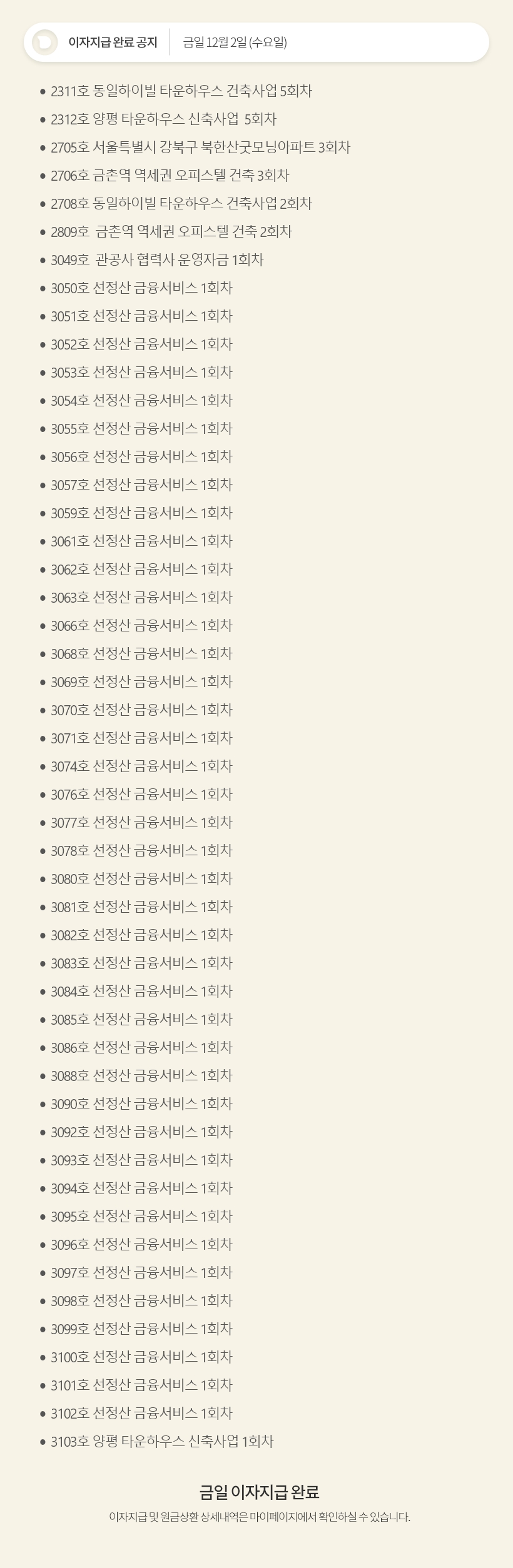 데일리 12월 2일 이자지급 완료 공지