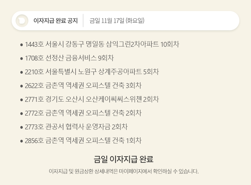 데일리 11월 17일 이자지급 완료 공지