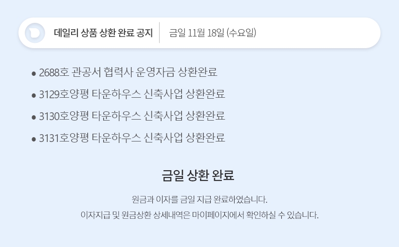 데일리 11월 18일 상품 상환 완료 공지