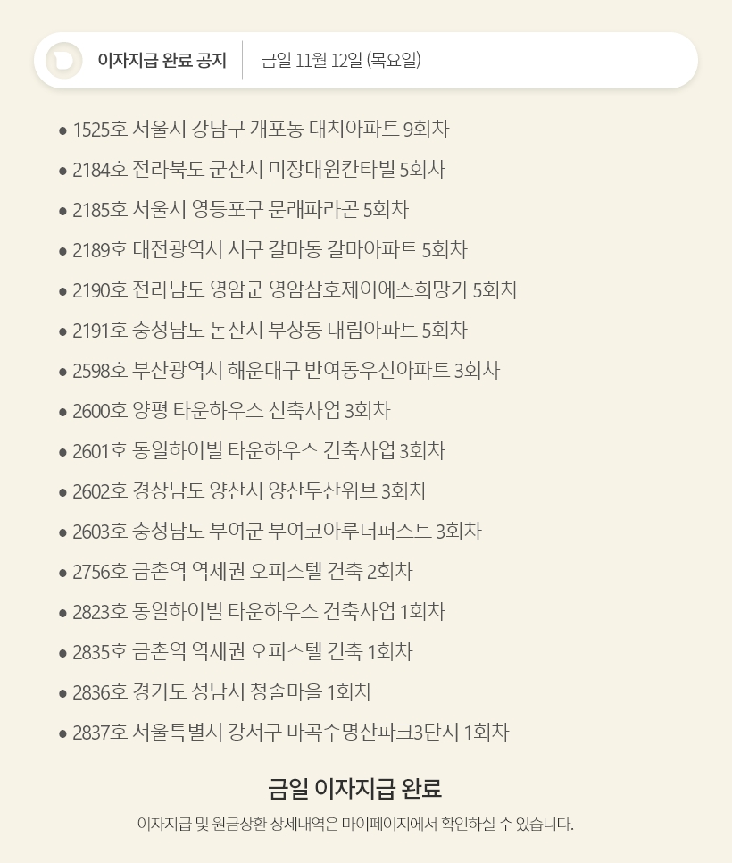 데일리 11월 12일 이자지급 완료 공지