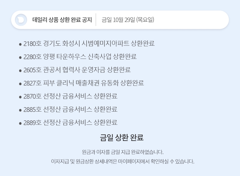 데일리 10월 29일 상품 상환 완료 공지