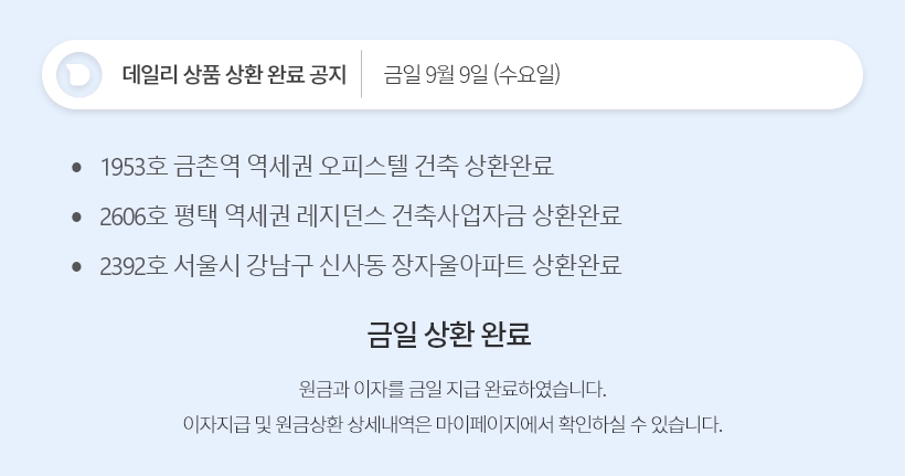 데일리 9월 9일 상품 상환 완료 공지