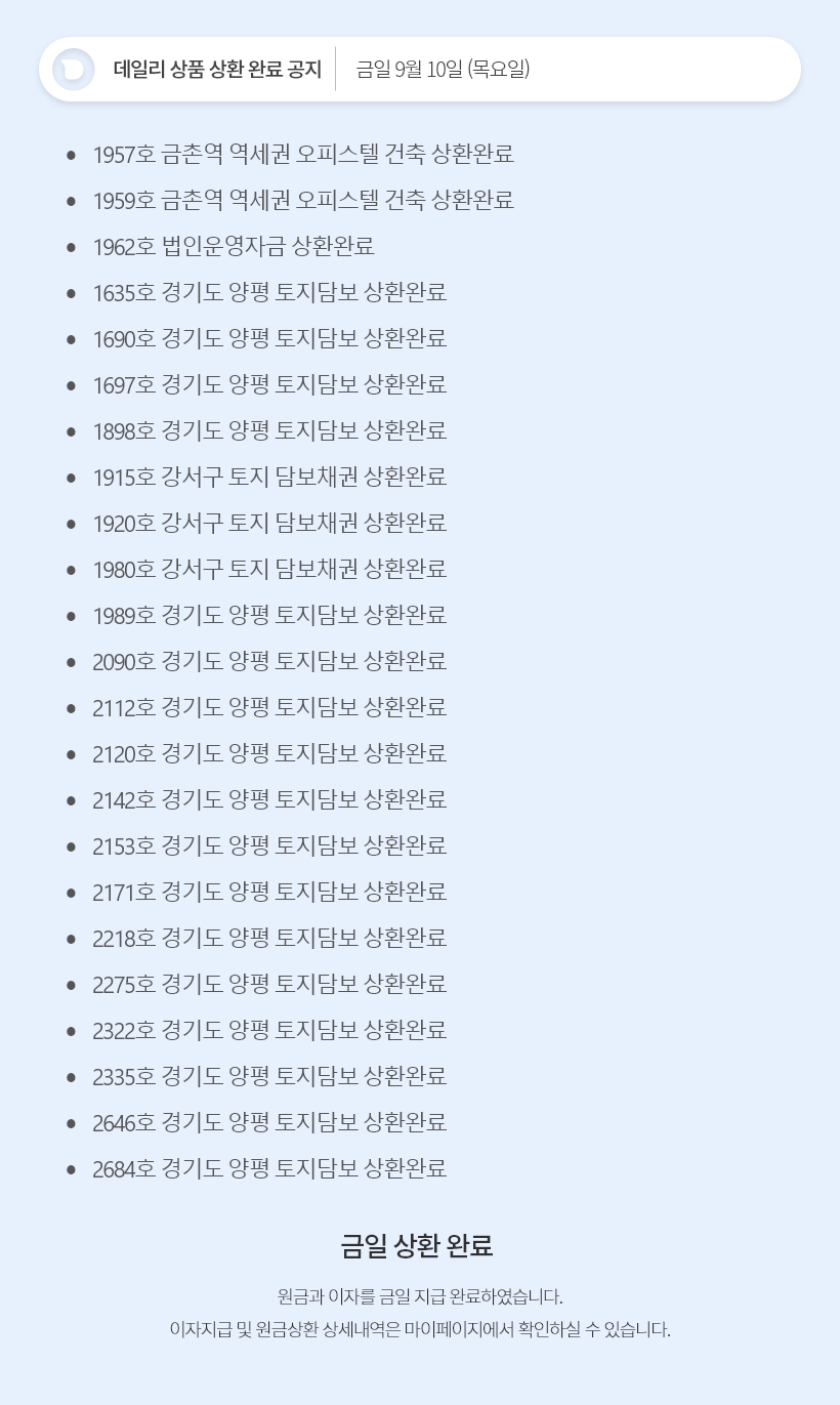 데일리 9월 10일 상품 상환 완료 공지