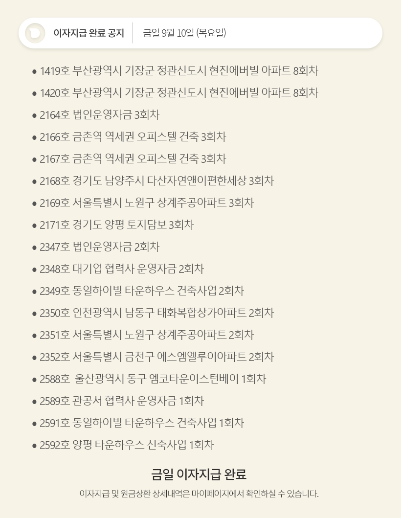 데일리 9월 10일 이자지급 완료 공지