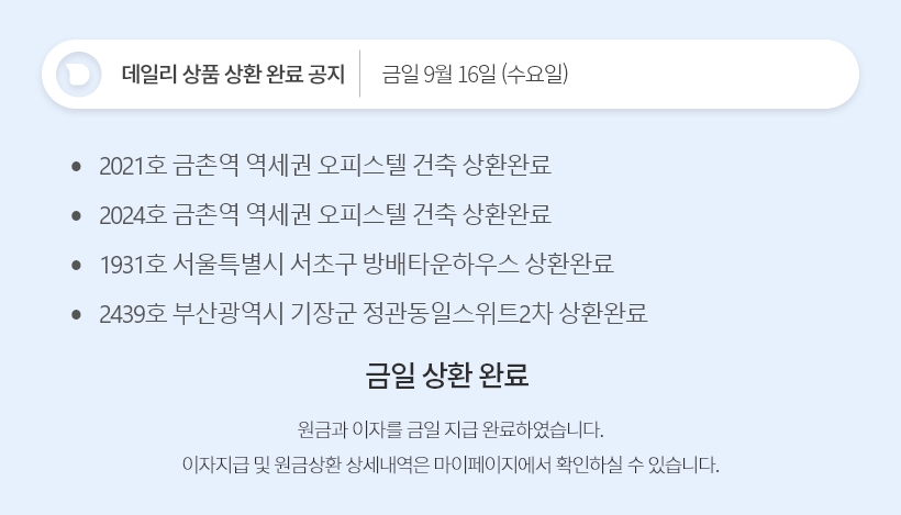 데일리 9월 16일 상품 상환 완료 공지