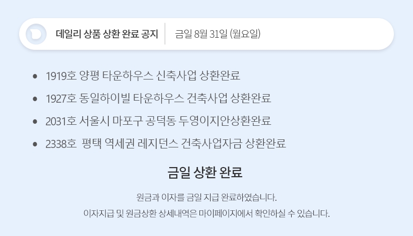 데일리 8월 31일 상품 상환 완료 공지