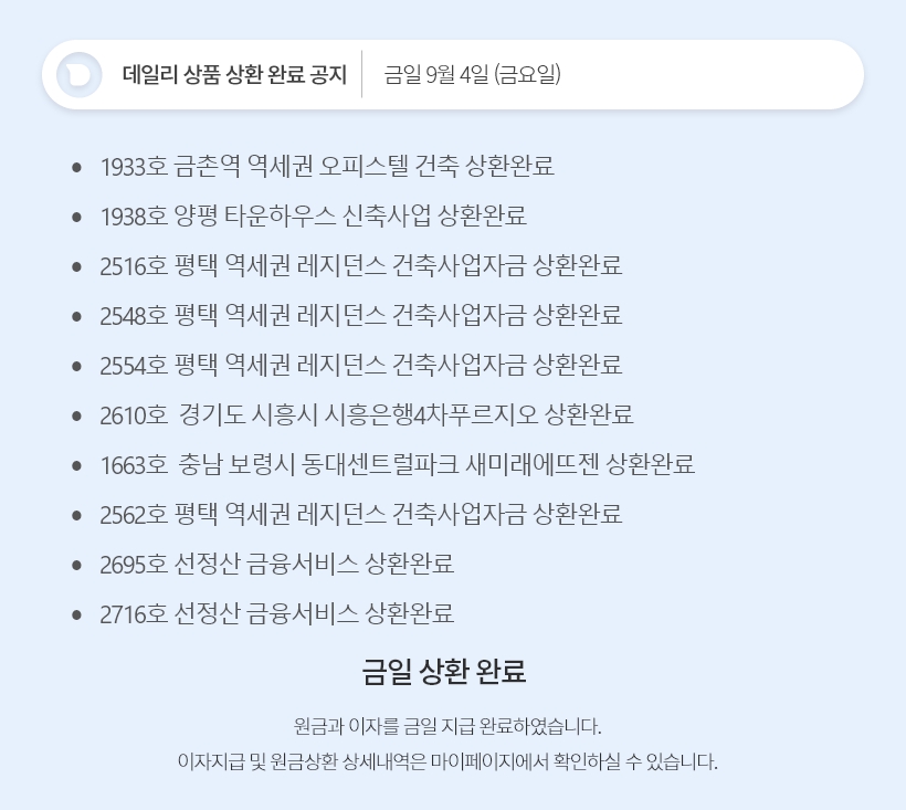 데일리 9월 4일 상품 상환 완료 공지