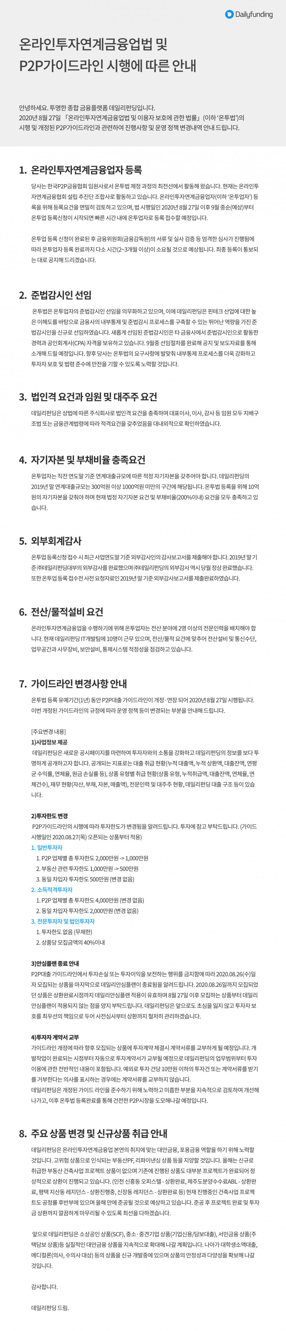 온라인투자연계금융업 및 P2P가이드라인 개정 관련 안내
