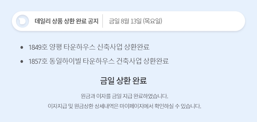 데일리 8월 13일 상품 상환 완료 공지