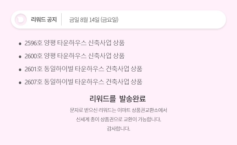데일리 2596호,2600호,2601호,2607호 리워드 공지