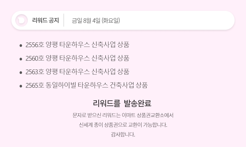 데일리 2556호,2560호,2563호,2565호 리워드 공지