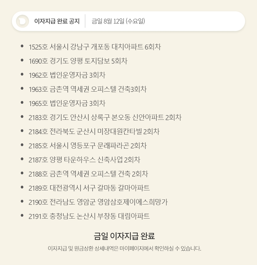 데일리 8월 12일 이자지급 완료 공지